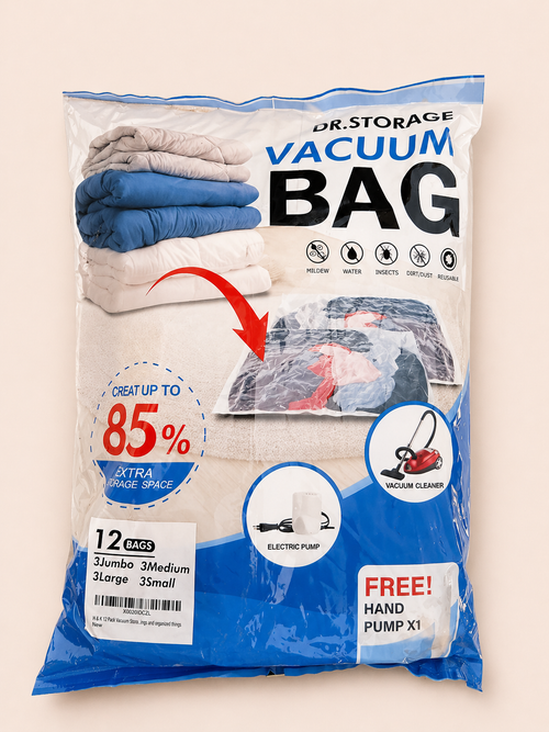 - 12 Vacuum Storage Bags in multiple sizes